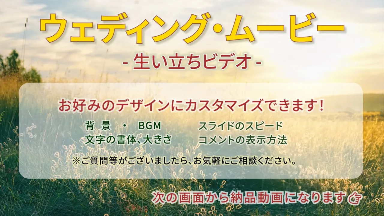 では、『サンプル動画-ウェディングムービー-』をお楽しみくださいませ(^^)